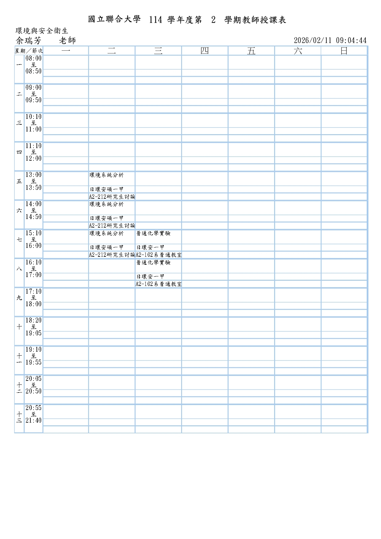 余瑞芳老師的課表